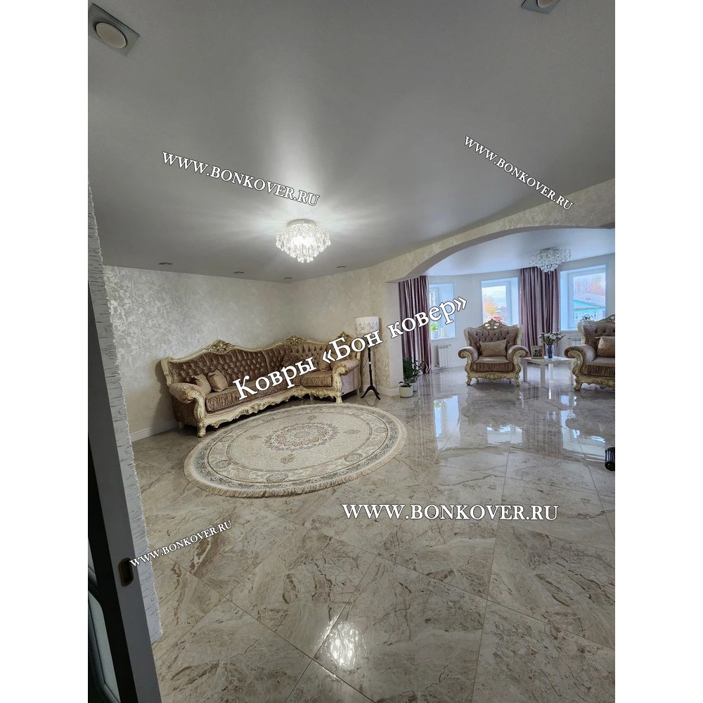 Восточный Ковер Для Гостиной Дизайн 30546 Круг станет шикарным преображением жилого помещения, подчеркивая высокий статус семьи владельца.